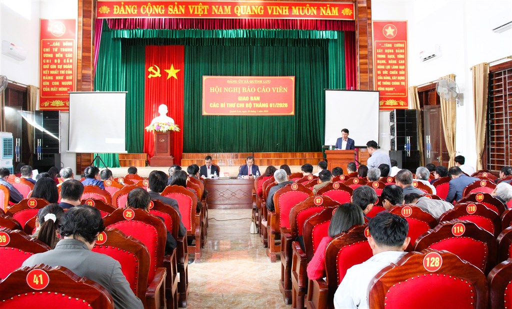 Quang cảnh hội nghị tại điểm cầu huyện Quỳnh Lưu