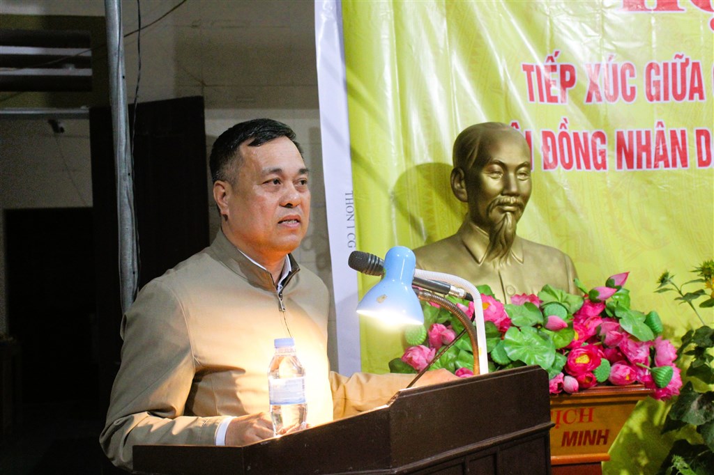 Bí thư Đảng ủy, Chủ tịch HĐND xã Quỳnh Lưu Hoàng Văn Bộ và các ứng cử viên đơn vị bầu cử số 1 tiếp xúc cử tri Thôn 1 Cầu Giát